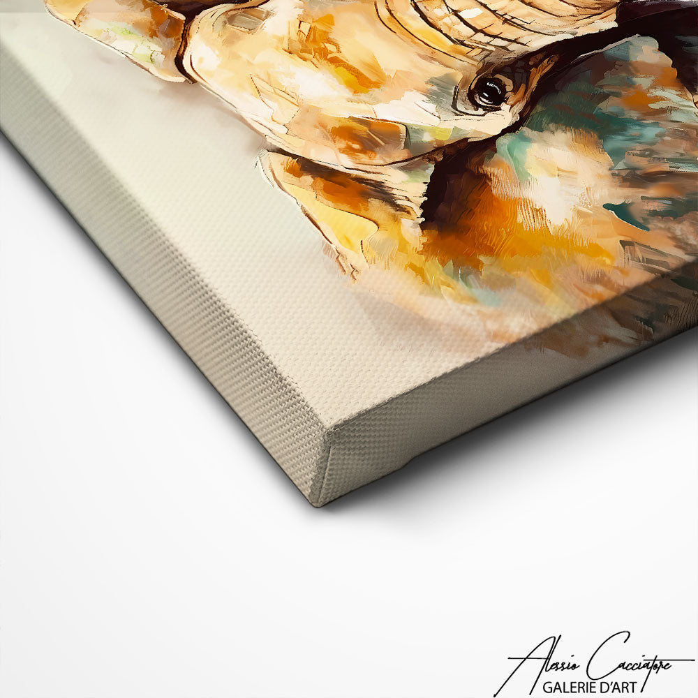 Nos toiles sont imprimées grâce à une encre spéciale resistante aux UV. Cette encre protège les couleurs au fil des années pour conserver le contraste de la peinture.