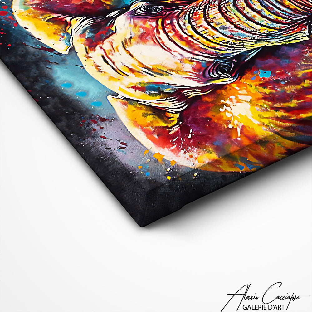 Nos toiles sont imprimées grâce à une encre spéciale resistante aux UV. Cette encre protège les couleurs au fil des années pour conserver le contraste de la peinture.