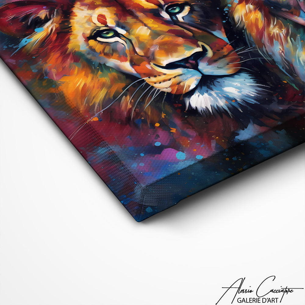 Transformez votre espace de vie avec ce superbe tableau de lion et lionne, fabriqué avec les matériaux les plus fins pour un aspect et une sensation de luxe pur. L'oeuvre qui donnera du caractère et de la profondeur à votre pièce.