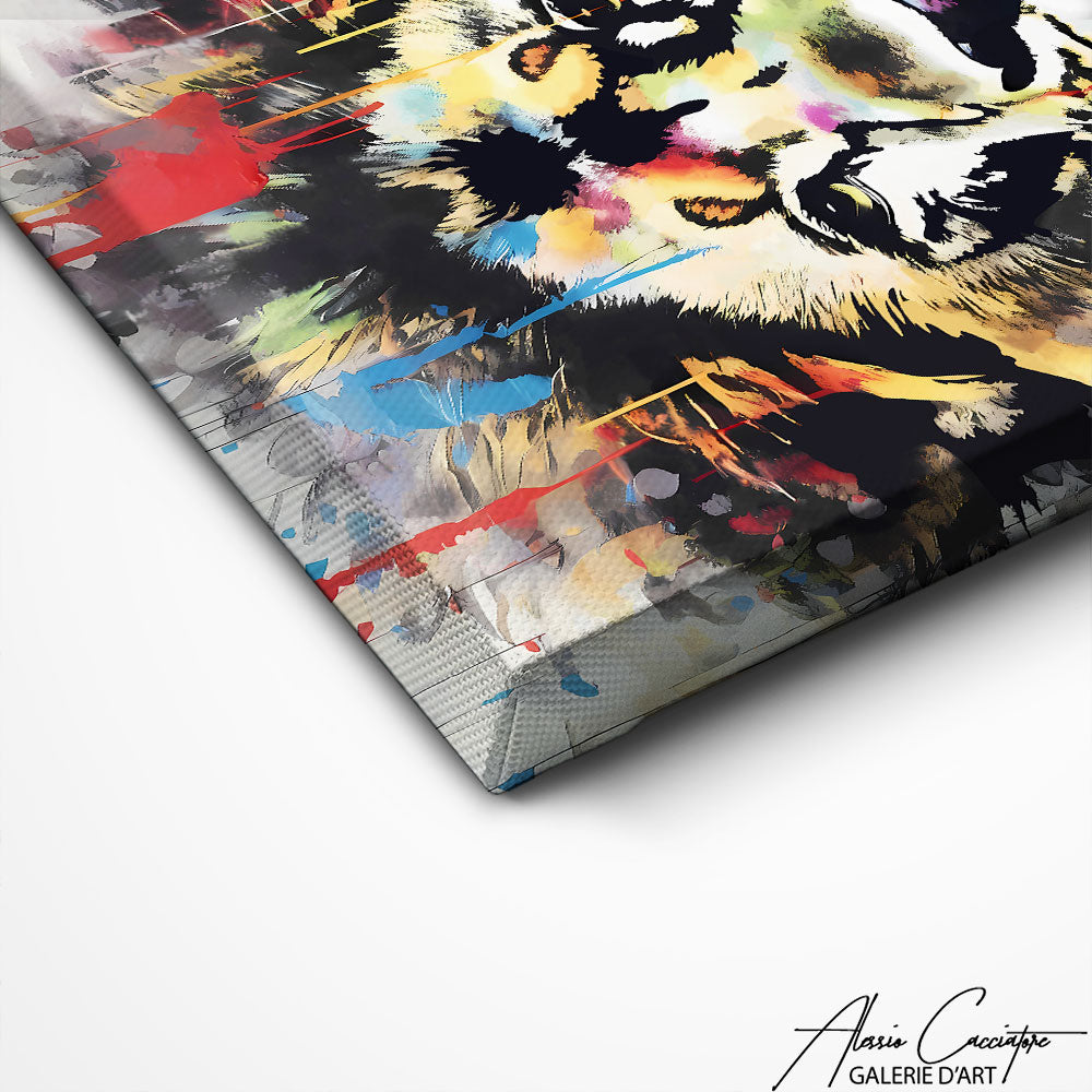 Les yeux du lion captent l'observateur avec une intensité si palpable qu'on peut presque sentir la puissance brute de la nature. Ce tableau lion gris va sans aucun doute stimuler votre ambition.