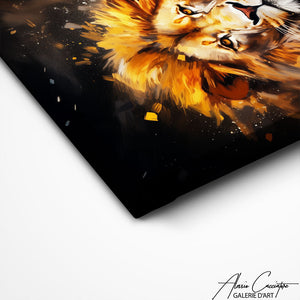 Fusionnant opulence et noblesse, notre tableau lion noir et or est une œuvre d'art luxueuse. Les teintes d'or se mêlent aux ombres noires pour créer un portrait de lion à la fois mystérieux et élégant, parfait pour un intérieur raffiné.