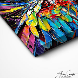Ce tableau perroquet coloré, avec ses teintes vives et ses détails éclatants, capture l’essence tropicale de cet oiseau. Parfait pour apporter une touche vibrante et dynamique à votre décoration intérieure.