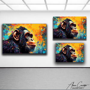 Plongez dans une interprétation vibrante de la vie simienne avec ce tableau de singe pop art. Les couleurs saturées et les motifs audacieux de ce style font de ce singe un symbole d'expressivité contemporaine.