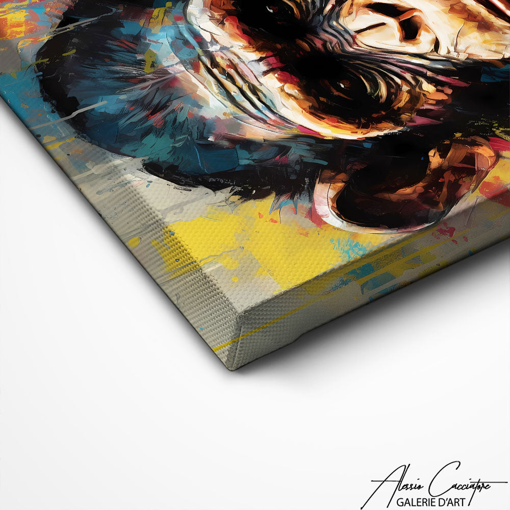 Les éléments graphiques et les couleurs de ce tableau de singe apporteront une note audacieuse à votre décoration. Une oeuvre idéale qui s'adaptera à tout intérieur.