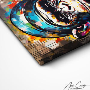 Ce tableau met en scène un singe dans le style vibrant du street art. Son visage expressif et les couleurs vives de la composition font de ce tableau une œuvre captivante et pleine de caractère.