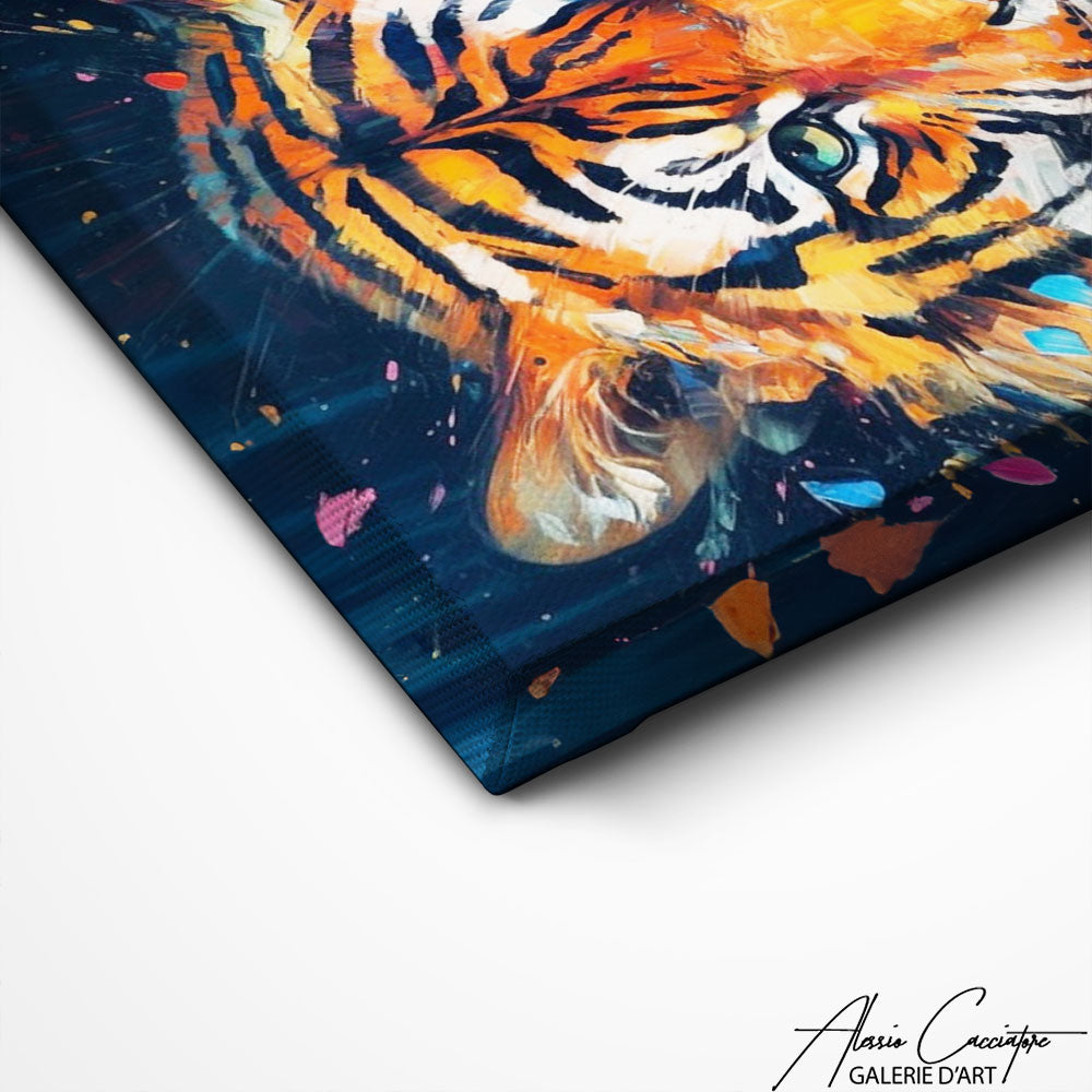 Le tableau tigre bleu est une pièce d'art exceptionnelle, où des nuances de bleu créent une atmosphère mystique et apaisante. Cette représentation originale du tigre est parfaite pour un intérieur moderne cherchant une touche d'élégance unique.