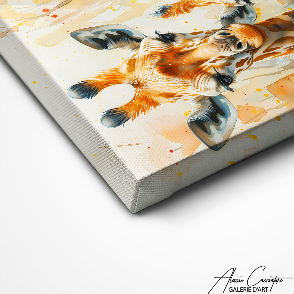 Ce tableau avec girafes capture la majesté de ces animaux, créant une scène dynamique et naturelle. Parfait pour apporter une atmosphère africaine et chaleureuse à votre espace de vie