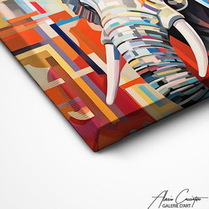 Cette œuvre d'art met en scène un éléphant majestueux dans un style unique, où chaque détail capture l'essence de sa grandeur, offrant une présence apaisante et imposante dans n'importe quelle pièce.