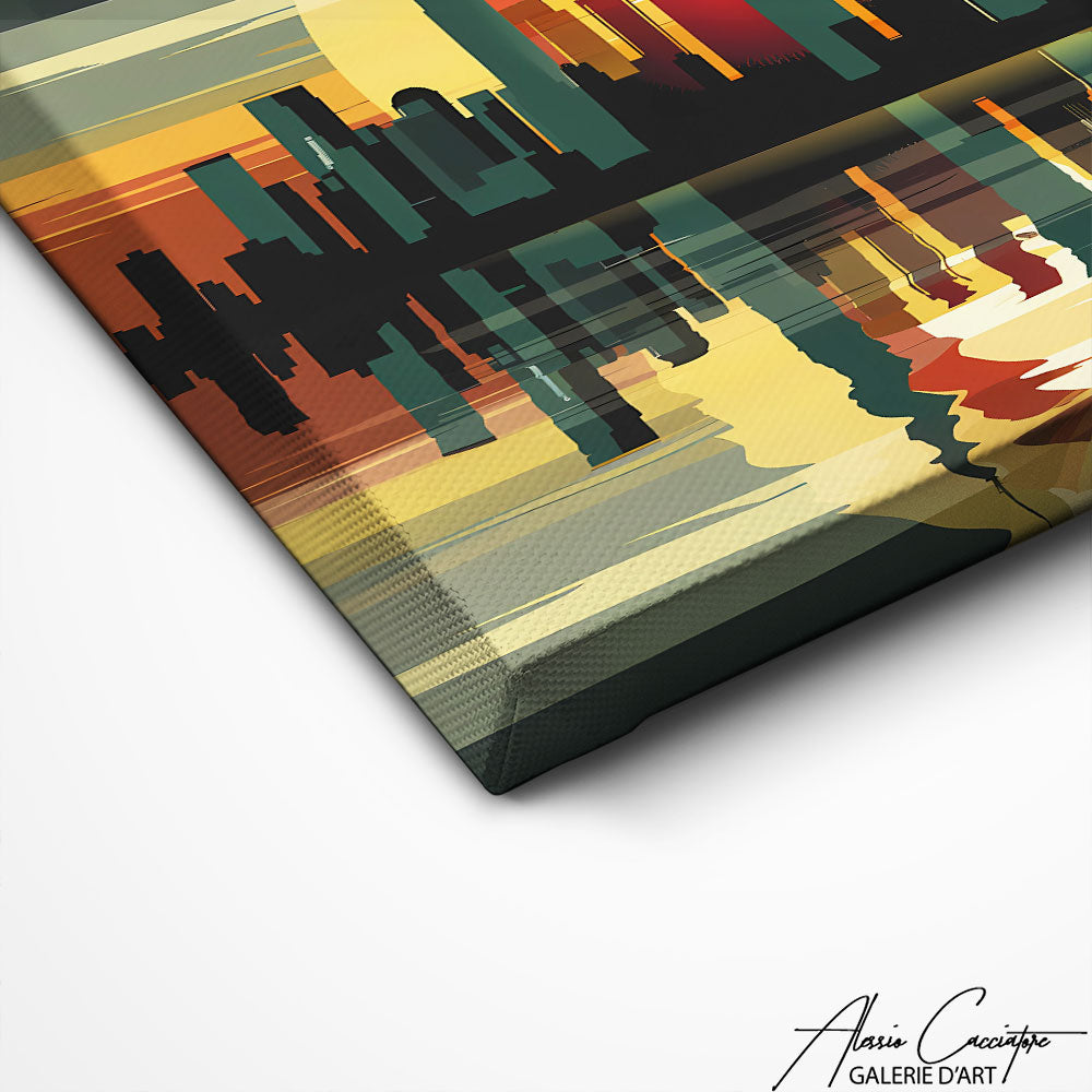 Nos toiles sont imprimées grâce à une encre spéciale resistante aux UV. Cette encre protège les couleurs au fil des années pour conserver le contraste de la peinture.
