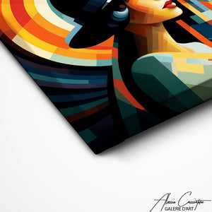 Ce tableau art déco représentant une femme illustre cette femme dans toute sa splendeur, capturant son élégance et sa force d'une manière à la fois moderne et intemporelle. Elle est parfaite pour enrichir un espace avec une touche de féminité et de raffinement
