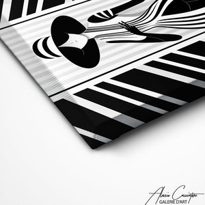 Imprégné de l'essence des années 1930, ce tableau Art Déco reflète le glamour et l'opulence de l'époque. Avec ses motifs symétriques, il constitue un ajout majestueux à tout espace cherchant à capturer l'esprit de cette période fastueuse.