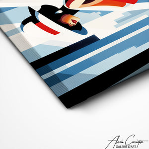 Notre tableau Art Déco offre ses motifs symétriques et ses teintes luxueuses. La combinaison harmonieuse des éléments classiques et modernes crée une ambiance de glamour intemporel, idéale pour enrichir un décor avec une touche d'élégance historique.