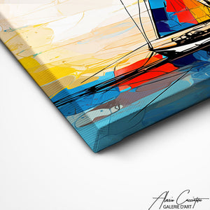 Moderne et stylisée, notre tableau bateau contemporain est une interprétation artistique des embarcations maritimes, idéale pour ceux qui apprécient l'art moderne et la thématique de la mer.