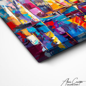 Nos toiles sont imprimées grâce à une encre spéciale resistante aux UV. Cette encre protège les couleurs au fil des années pour conserver le contraste de la peinture.