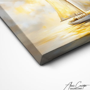 Notre tableau bateau met en scène un voilier majestueux naviguant à travers des eaux calmes. Les détails minutieux et les jeux de lumière en font une œuvre idéale pour les passionnés de la mer et de l'aventure.