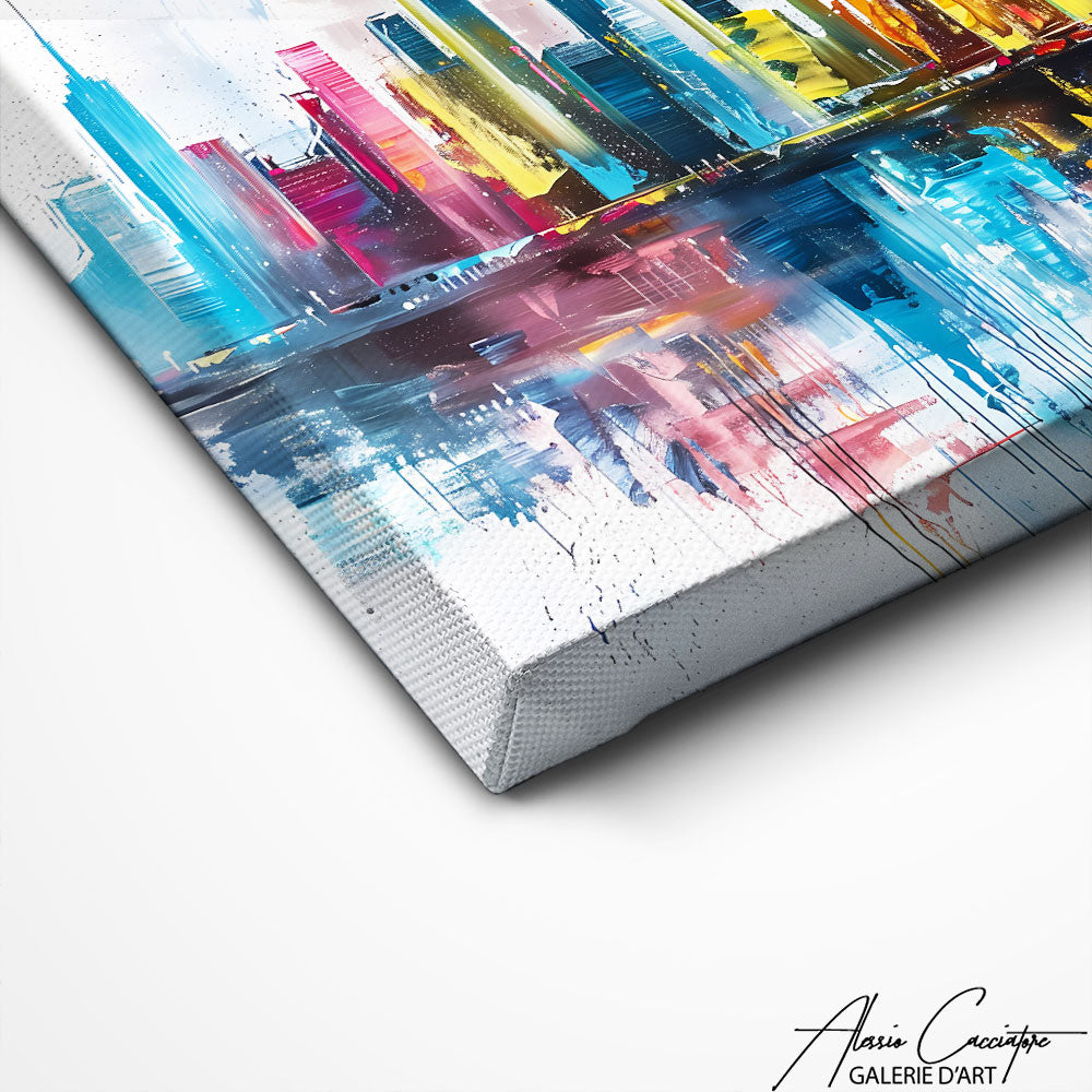 Nos toiles sont imprimées grâce à une encre spéciale resistante aux UV. Cette encre protège les couleurs au fil des années pour conserver le contraste de la peinture.