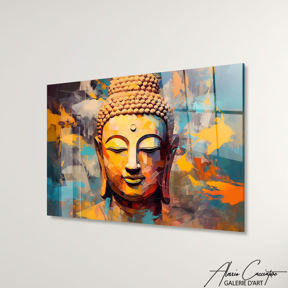 Le tableau bouddha acrylique est une expression artistique moderne de la figure emblématique de Bouddha. Cette œuvre offre des détails riches et des couleurs profondes, créant un point focal fascinant et spirituellement enrichissant dans tout type d'intérieur