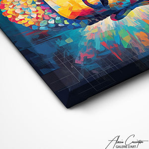 Nos toiles sont imprimées grâce à une encre spéciale resistante aux UV. Cette encre protège les couleurs au fil des années pour conserver le contraste de la peinture.