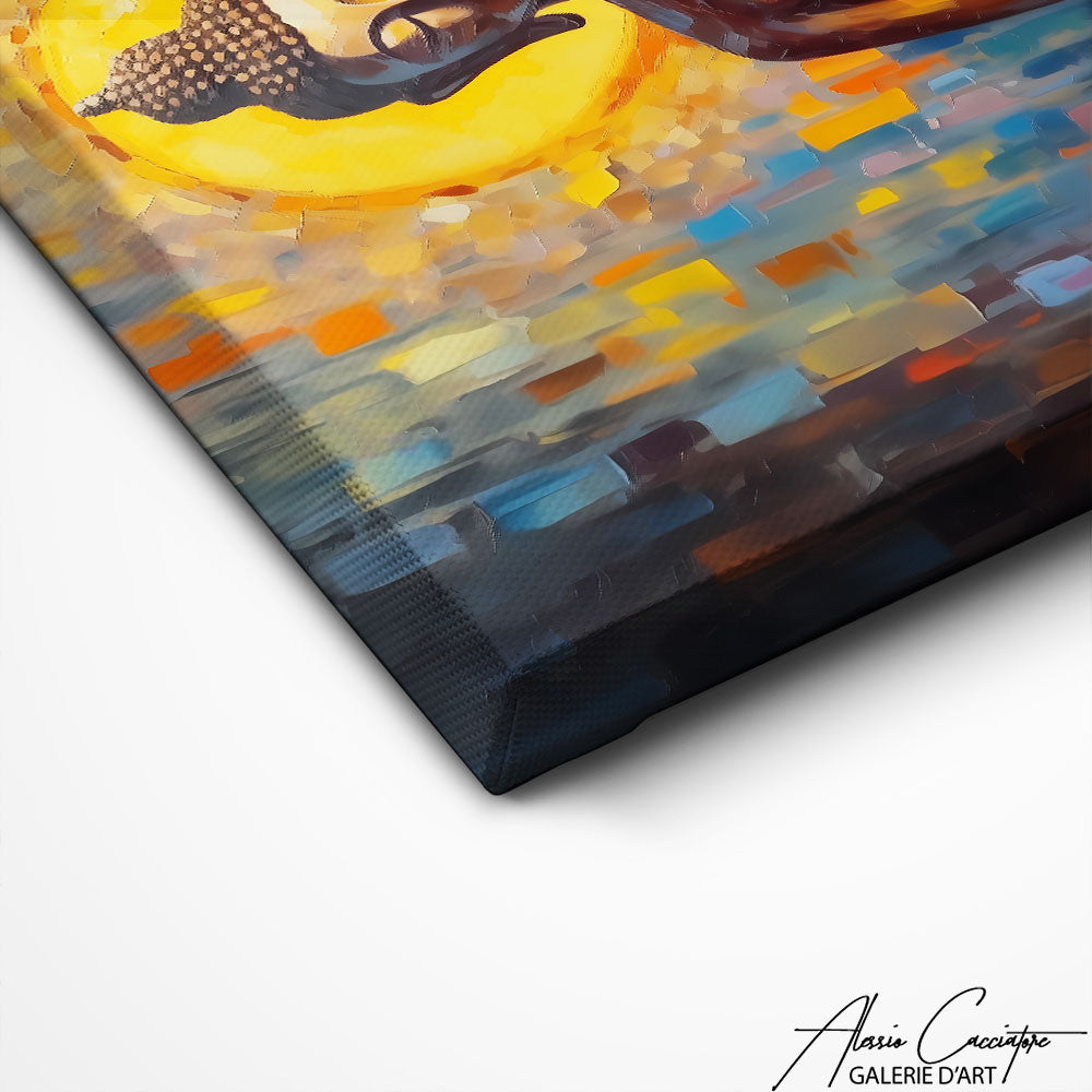 Nos toiles sont imprimées grâce à une encre spéciale resistante aux UV. Cette encre protège les couleurs au fil des années pour conserver le contraste de la peinture.