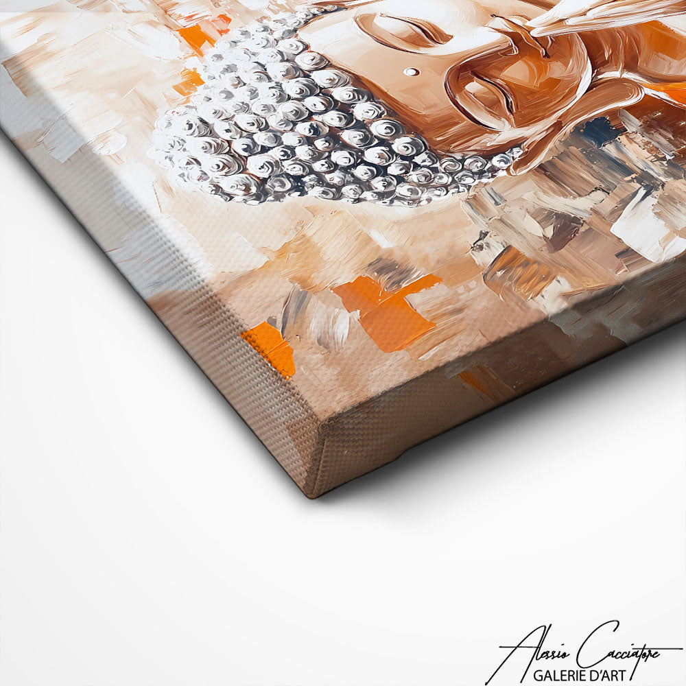 Notre tableau Bouddha abstrait combine des formes modernes et des couleurs apaisantes pour capturer l'esprit de sérénité et de spiritualité. Parfait pour un salon ou un espace zen, il apporte une ambiance méditative et contemporaine à votre décoration.
