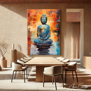 Laissez-vous transporter par la tranquillité de ce tableau Bouddha Zen. Chaque détail évoque la paix intérieure, faisant de cette œuvre un havre de calme dans votre espace de vie.
