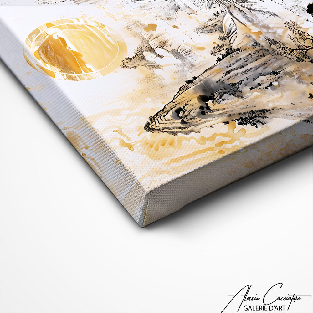 Nos toiles sont imprimées grâce à une encre spéciale resistante aux UV. Cette encre protège les couleurs au fil des années pour conserver le contraste de la peinture.