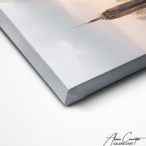 Notre tableau déco bureau professionnel illustre la skyline de New York depuis un building dans un style abstrait. Élégant et contemporain, il attire le regard et inspire modernité. Une œuvre parfaite pour un espace de travail chic.