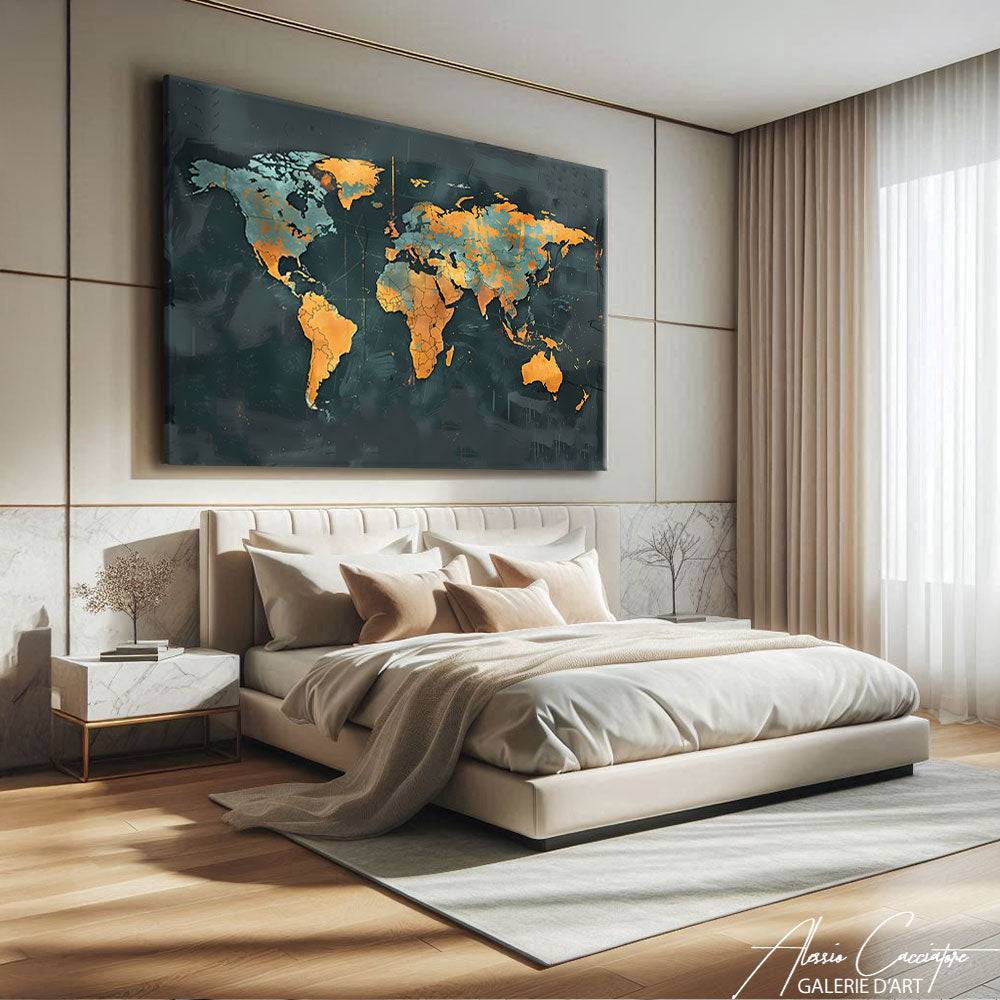 Apportez une touche de style urbain à votre intérieur avec ce tableau carte du monde industriel. Son style en fait un choix idéal pour un loft ou un espace moderne.