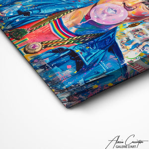 Nos toiles sont imprimées grâce à une encre spéciale resistante aux UV. Cette encre protège les couleurs au fil des années pour conserver le contraste de la peinture.