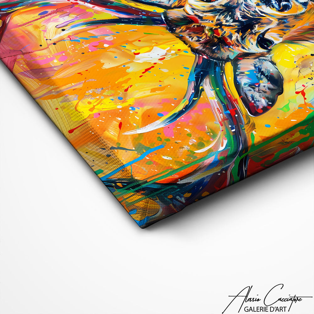 Ce tableau cerf couleur présente l'animal avec une palette colorée, mêlant réalité et fantaisie. Parfaite pour un intérieur audacieux, elle allie la beauté naturelle du cerf à une expression artistique pleine de vie.