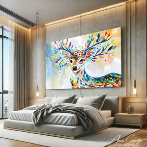 Ce tableau cerf fleur marie harmonieusement la grâce de l’animal et la douceur des fleurs. Les teintes délicates et les compositions florales donnent une touche poétique et apaisante à votre espace, idéal pour une ambiance douce et naturelle.
