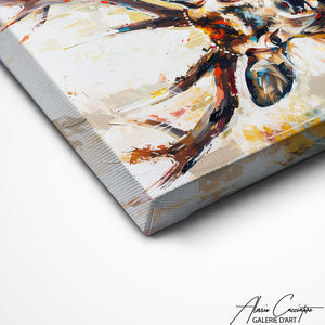 Nos toiles sont imprimées grâce à une encre spéciale resistante aux UV. Cette encre protège les couleurs au fil des années pour conserver le contraste de la peinture.
