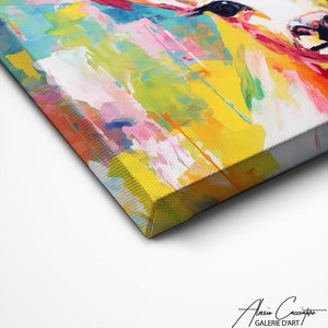 Nos toiles sont imprimées grâce à une encre spéciale resistante aux UV. Cette encre protège les couleurs au fil des années pour conserver le contraste de la peinture.
