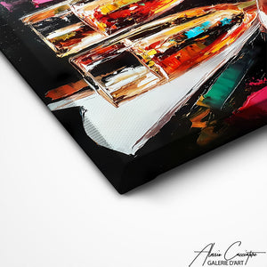 Ce tableau design luxe capture deux mains portant un toast au champagne. Entre luxe et convivialité, il incarne l’élégance et la célébration de l’instant.