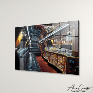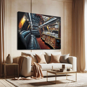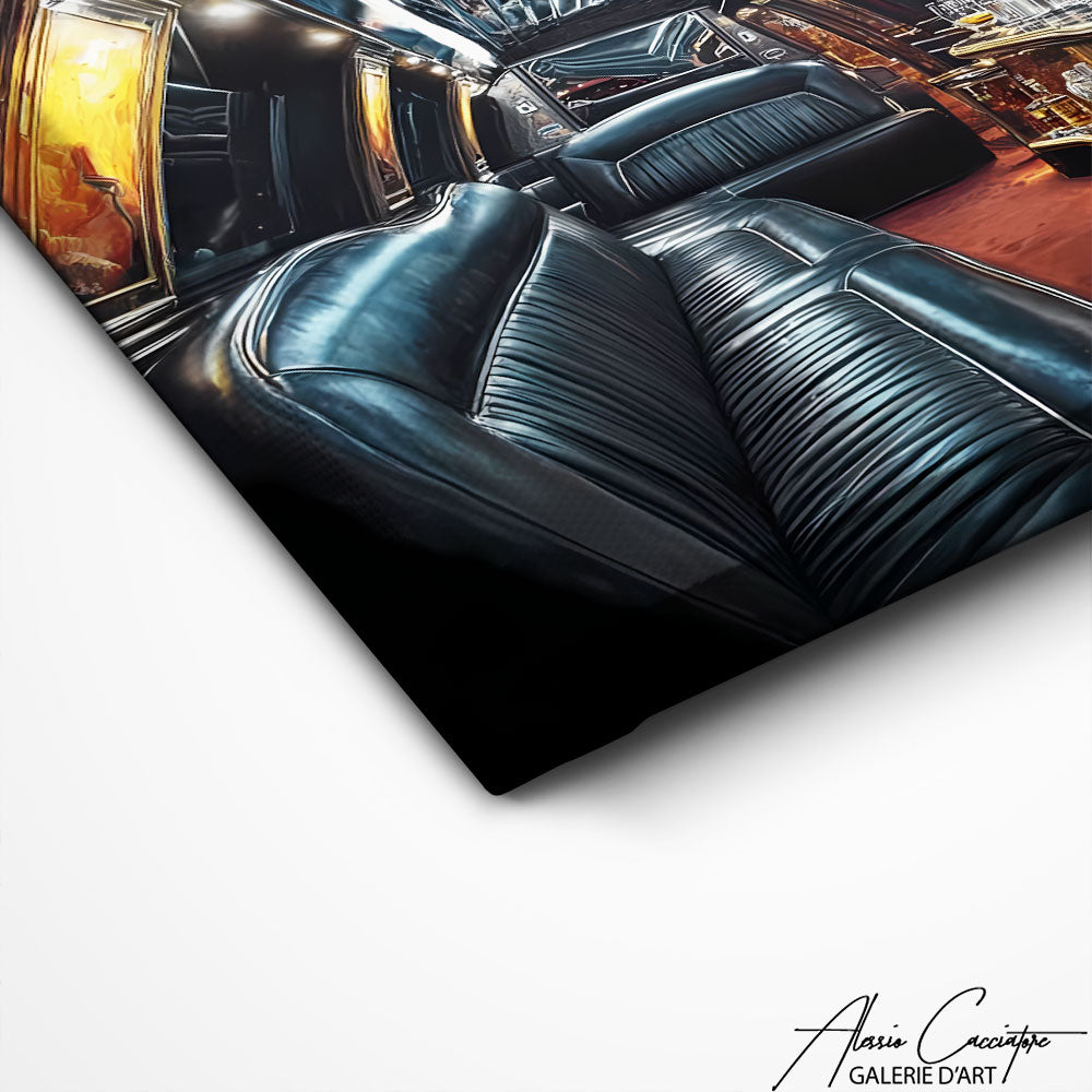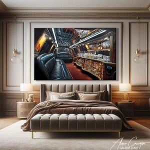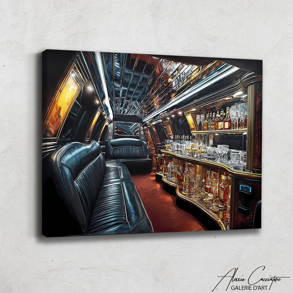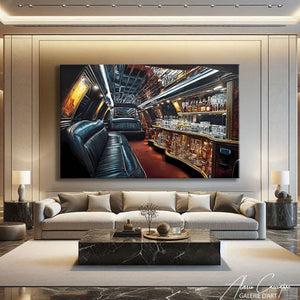 Notre tableau limousine met en avant l’intérieur d’une limousine chic avec bar intégré. Élégant et prestigieux, il respire luxe et distinction. Idéal pour habiller vos murs avec style.