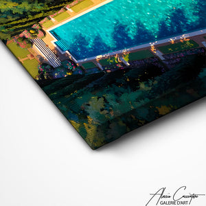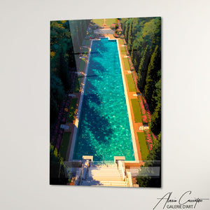 Notre tableau tendance pour salon représente une piscine extérieure chic et luxueuse au cœur d’un jardin élégant. Élégant et raffiné, il respire prestige et sérénité. Idéal pour sublimer un intérieur moderne et haut de gamme.
