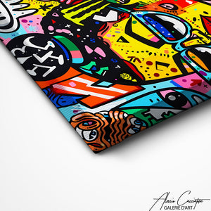 Vibrant d'énergie, notre Tableau Coloré Street Art est une explosion de couleurs qui met en avant le dynamisme urbain. Cette oeuvre est une invitation à embrasser la vivacité de la vie, idéale pour illuminer et revitaliser tout espace de vie
