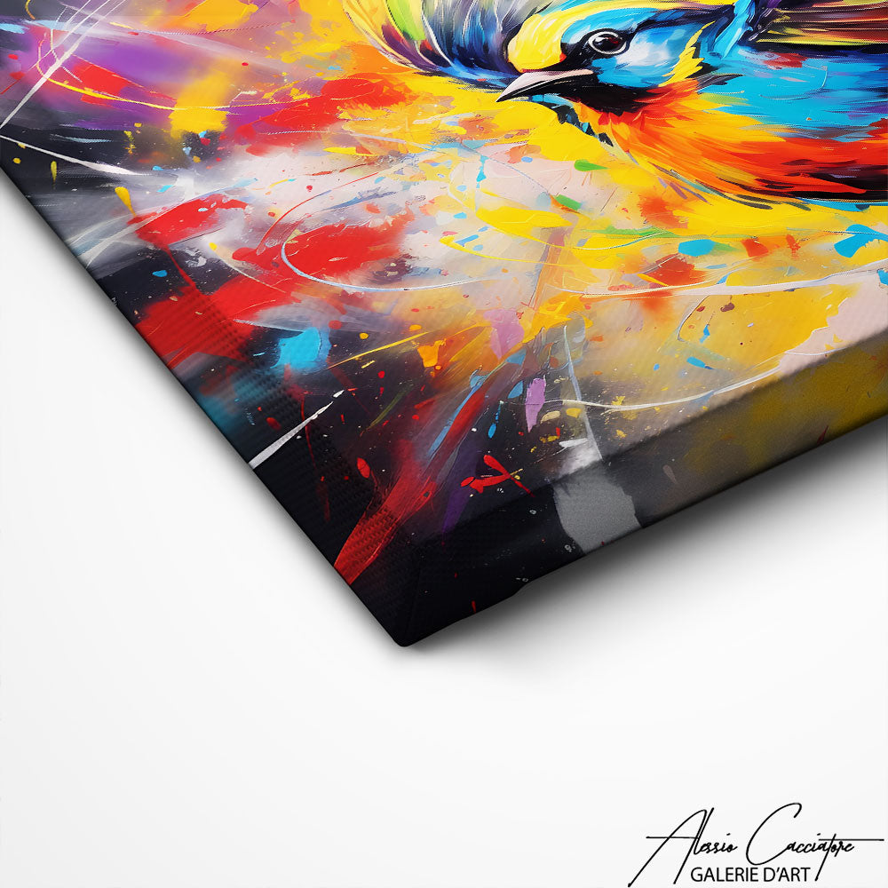 Notre Tableau Oiseau Coloré est une célébration de la diversité et de la beauté de la nature. Avec ses teintes lumineuses et son expression artistique audacieuse, il attire l'œil et illumine l'espace.
