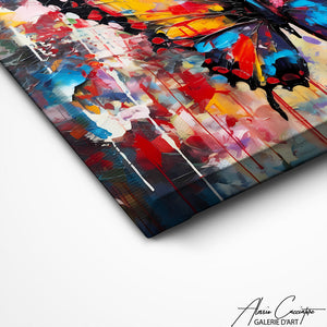 L'éclat des couleurs de ce tableau papillon coloré relèvera le caractère de votre pièce. Un véritable kaléidoscope de nuances qui illuminera votre espace.