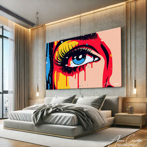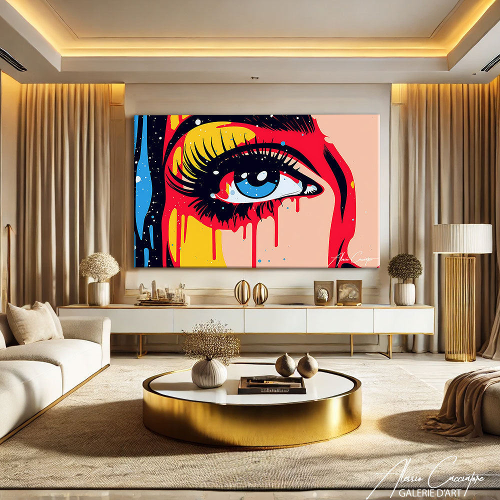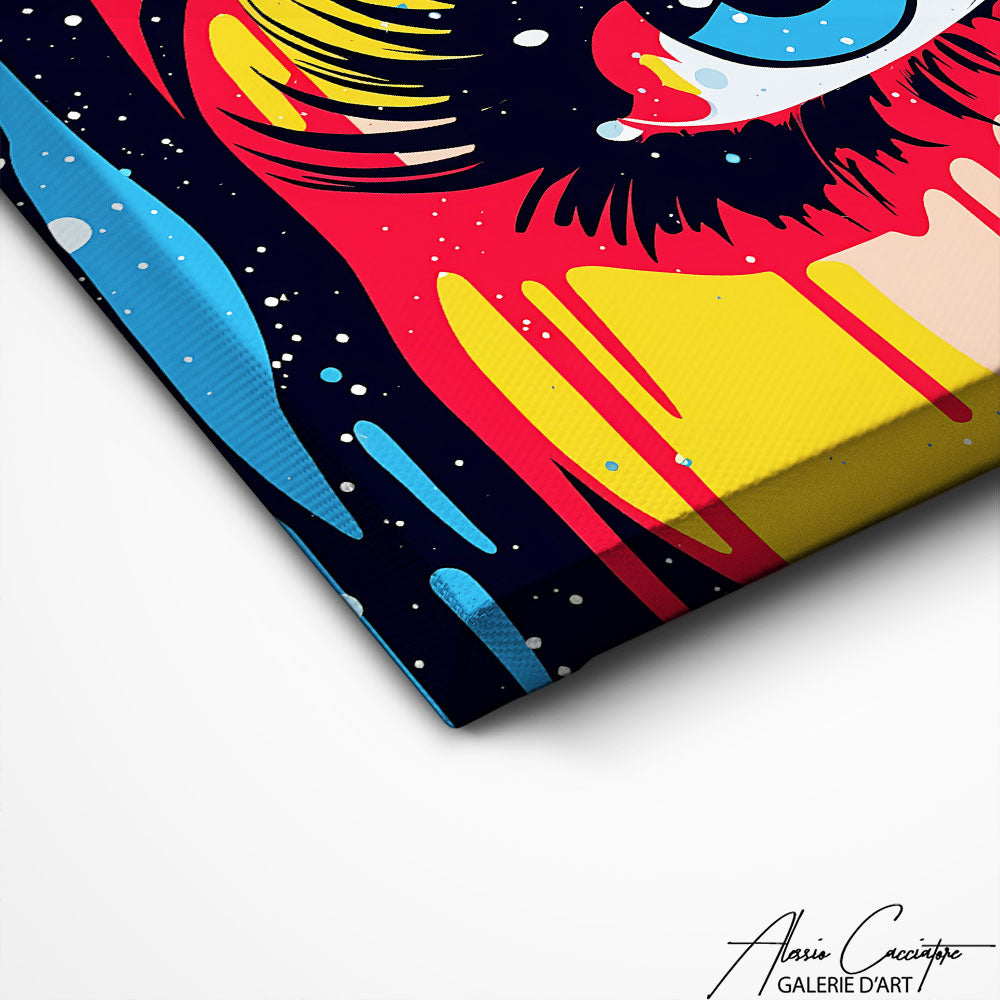 Notre tableau street art coloré représente un œil stylisé dans un univers street art haut en couleur, mêlant éclaboussures, motifs graphiques et esprit pop. Le regard intense capte immédiatement l’attention dans une composition vivante et expressive. Parfait pour une déco audacieuse et contemporaine. Ce tableau mêle émotion, couleur et culture urbaine avec impact.