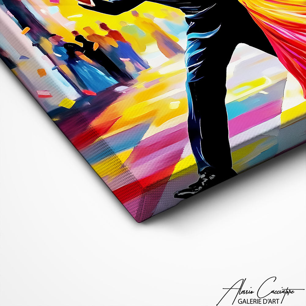 Notre tableau capture l’élégance d’un couple en pleine danse, figé dans un pas rythmé et passionné. L’équilibre des corps et le mouvement suggéré donnent vie à l’image. Idéal pour un espace dynamique ou artistique. Ce tableau traduit l’amour à travers la grâce et l’émotion du geste.