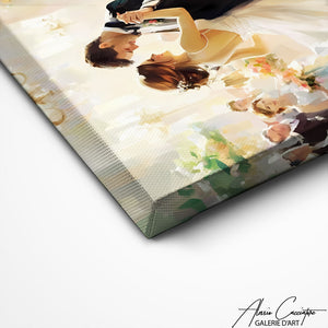 Notre tableau représente un couple dans un moment tendre et complice, capturé avec émotion et finesse artistique. Les gestes sont doux, les regards intenses, pour une scène pleine de sensibilité. Parfait pour une chambre ou un salon chaleureux. Ce tableau évoque l’amour dans toute sa simplicité.