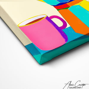 Notre tableau design pour cuisine apporte une dimension artistique contemporaine à cet espace fonctionnel. Les formes géométriques et la composition épurée s'affranchissent des représentations culinaires classiques pour créer un impact visuel sophistiqué. Une pièce qui élève votre cuisine au rang d'espace décoratif avec style et modernité.