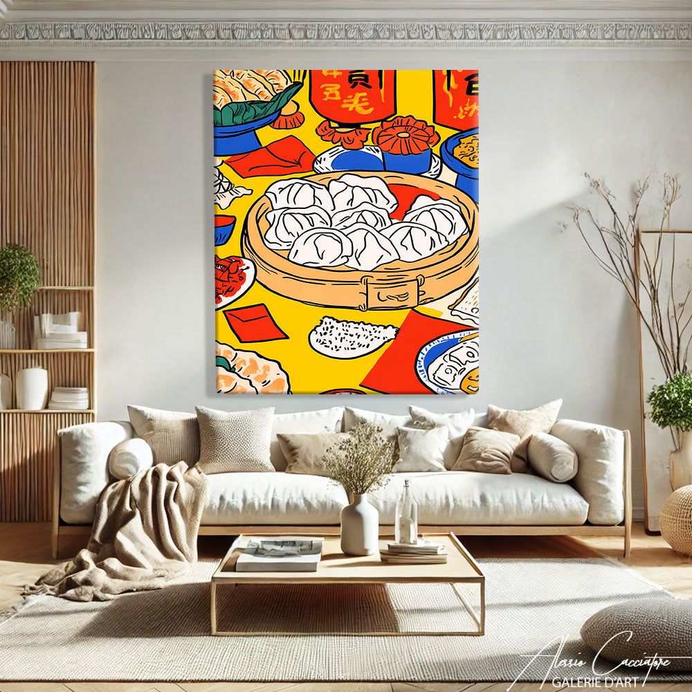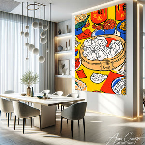 Notre tableau design apporte une touche d'art contemporain avec ses formes géométriques saisissantes. Un parti pris artistique qui transforme votre cuisine en galerie moderne, introduisant élégance et sophistication dans cet environnement fonctionnel grâce à son langage graphique épuré et sa présence visuelle affirmée.