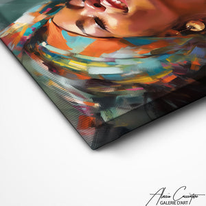 Laissez-vous transporter par l'émotion intense qui se dégage de tableau de femme africaine. Le savant mélange de textures et de couleurs crée une ambiance à la fois dynamique et apaisante, idéale pour donner vie à vos espaces de vie.
