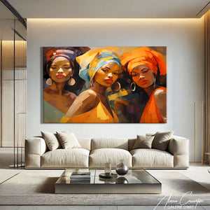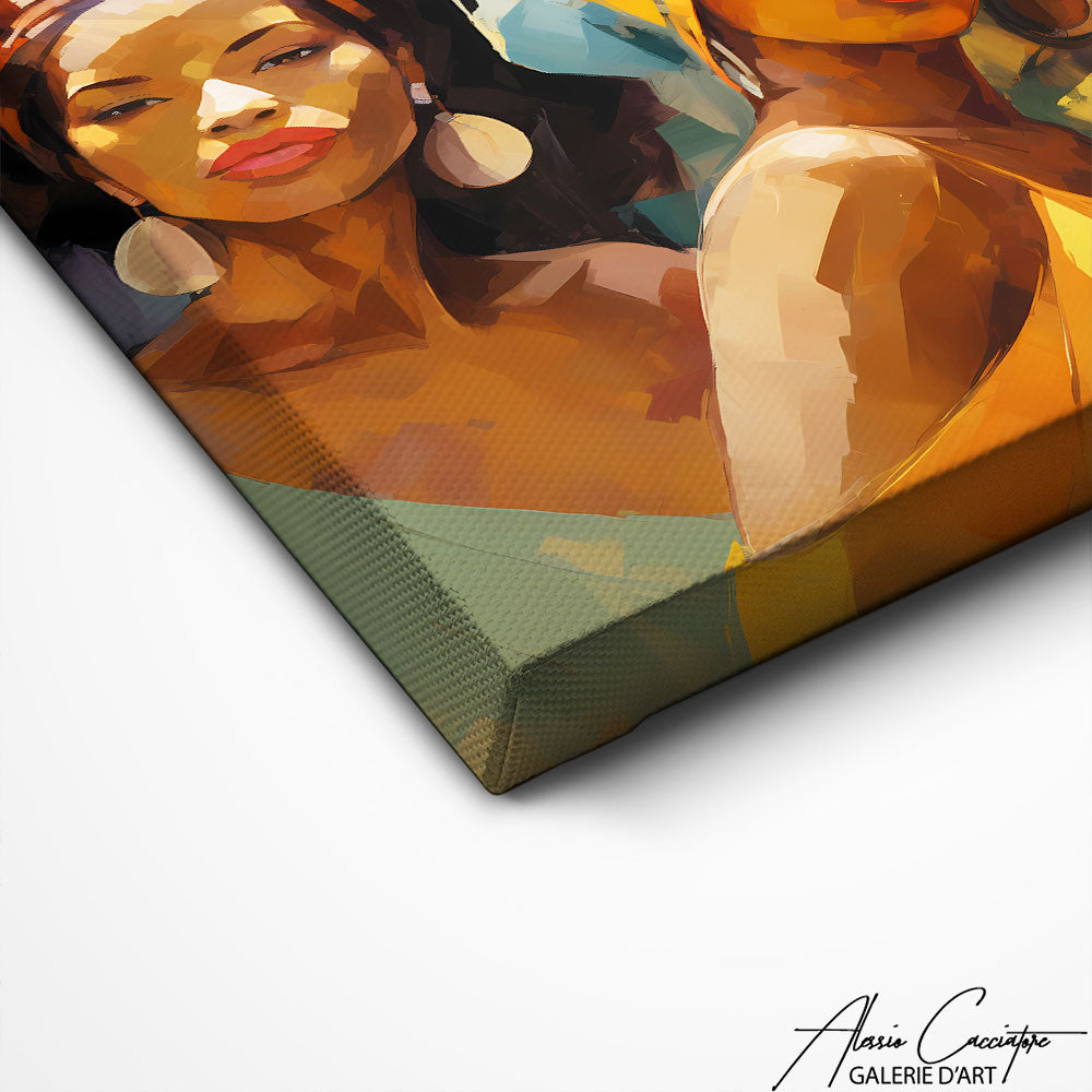 Dans ce tableau majestueux, chaque détail parle de l'immensité de l'Afrique. Depuis les déserts dorés jusqu'aux forêts luxuriantes, l'artiste capture avec finesse la splendeur du continent.