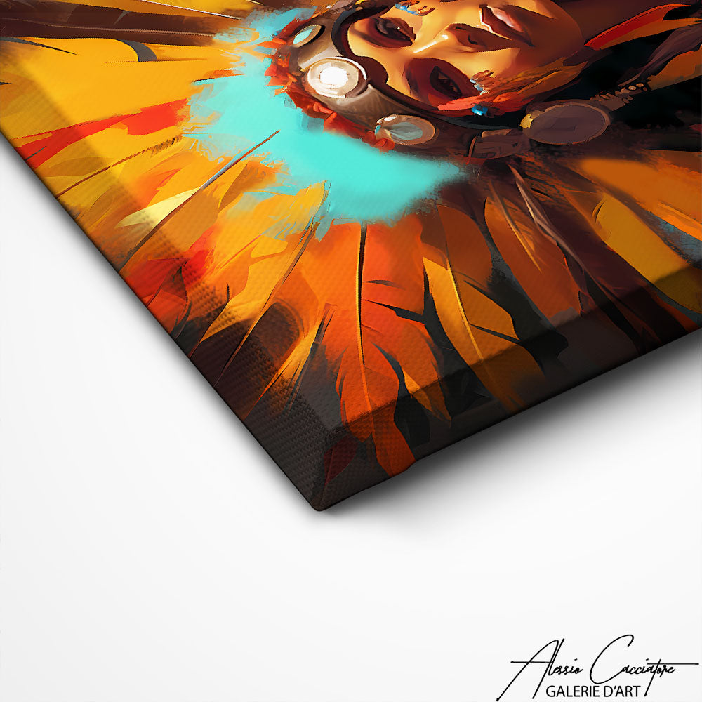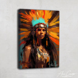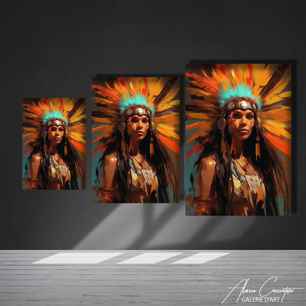 Ce tableau femme indienne plume est une célébration de la beauté naturelle, où tradition et modernité se rencontrent, illuminant votre pièce de ses couleurs captivantes.
