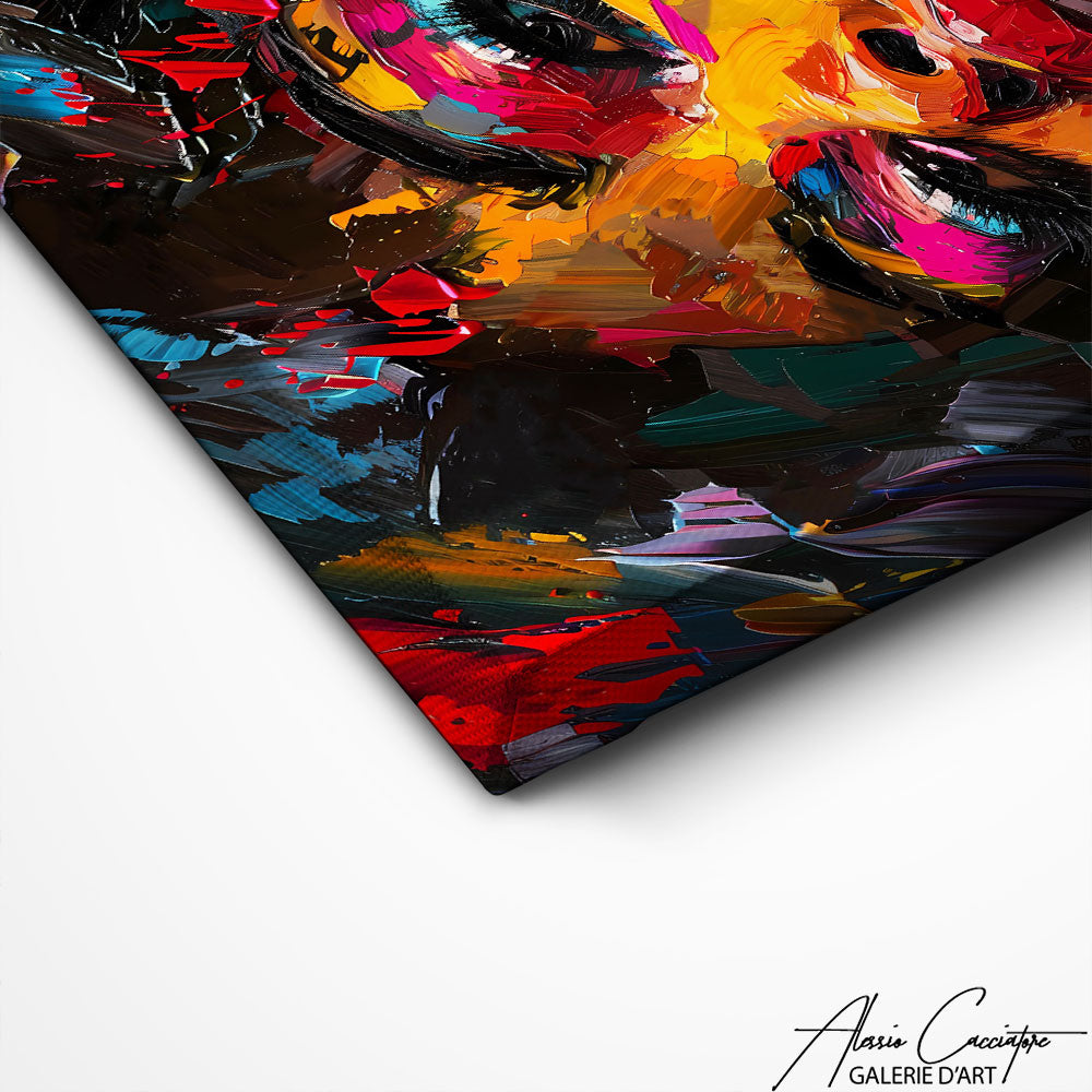 Nos toiles sont imprimées grâce à une encre spéciale resistante aux UV. Cette encre protège les couleurs au fil des années pour conserver le contraste de la peinture.