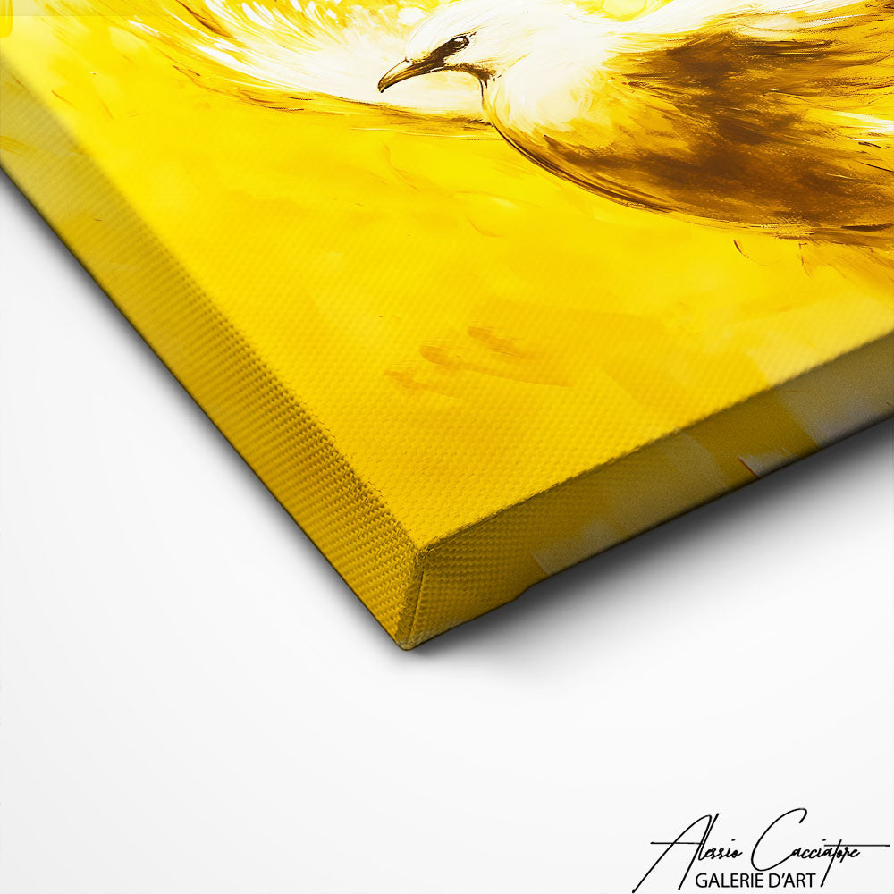 Ajoutez une touche de luxe et de raffinement à votre décor avec ce tableau oiseau doré. Les teintes dorées apportent une chaleur et une élégance particulières, parfaites pour un intérieur sophistiqué et moderne.