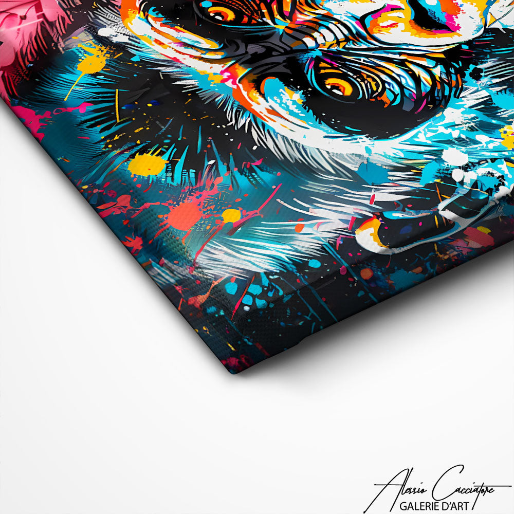 Notre tableau de gorille est une représentation colorée qui évoque toute la prestance et la curiosité de ces créatures majestueuses. C'est une œuvre qui suscite réflexion et admiration, idéale pour un environnement inspiré par la faune